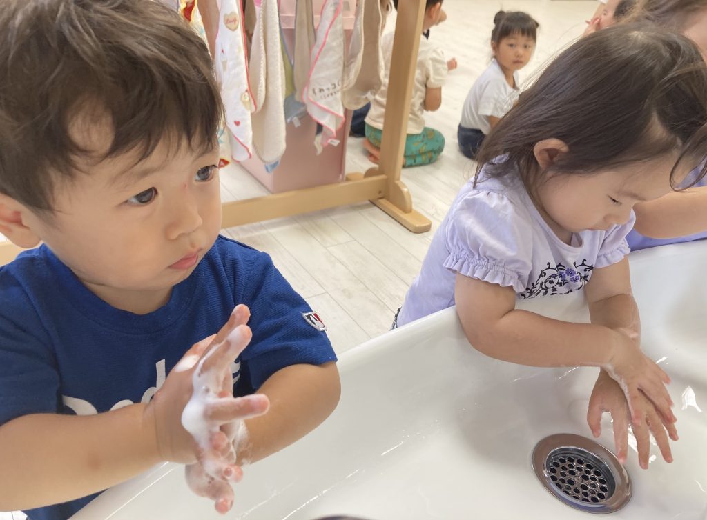SDGsdayの今日のテーマは 『感染予防について』でした どんな場所にバイキンさんがいるかな? バイキンさんが体の中でいたずらをしない為にはどうしたらいいかな?と 先生が動画やスケッチブックシアターで、分 …