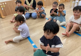 今日は戸外遊びに行く寸前で雨が降ってしまったので 屋根の付いている場所でシャボン玉をしました 落ち葉を見つけると、「綺麗よ~」と見せてくれました! その後、9月生まれのお友だちの誕生日会をしました 皆で♪H …