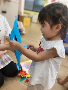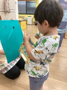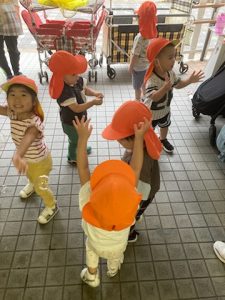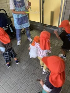 今日は戸外遊びに行く寸前で雨が降ってしまったので
