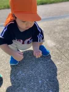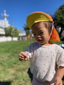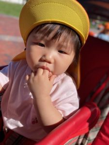 ↑ひよこグループのお友だちはお散歩車で景色を見たり