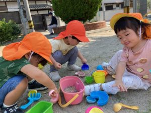 りすグループさんとねずみグループさんはお砂遊びを楽しみました