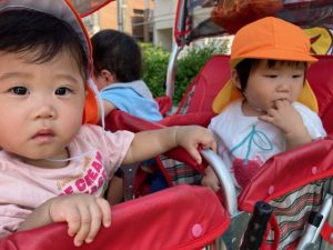 公園内を探索したりお散歩者に乗って公園内の景色を見て