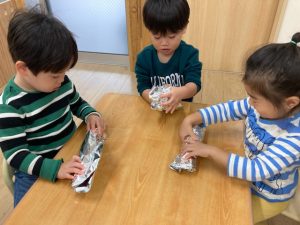 ひよこさんは新聞のしゃかしゃかの音を感じたり