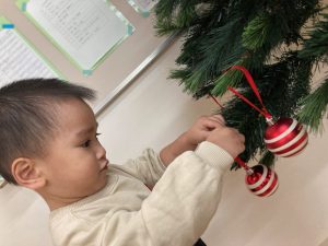 クリスマスツリーの飾り付けをみんなで行いました