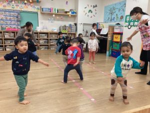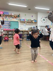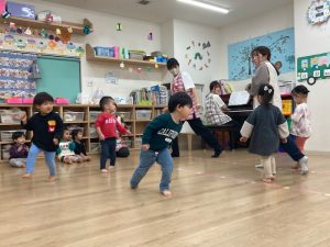 来月の発表会でするリトミック遊びを行いました