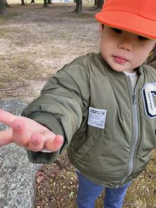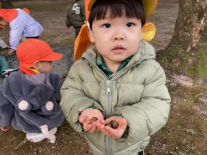 ↓「どんぐりよ~」と言いながら見せてくれる姿に
