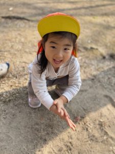 ↓木の実やどんぐりを見つけると「見て~!!」と