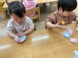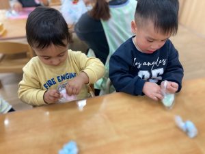 今日は3月に行うお店屋さんごっこの綿菓子を作りました