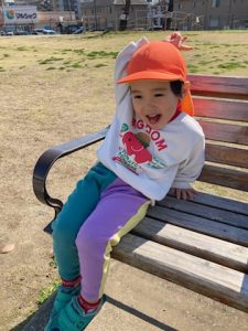 ↓「ちょっと休憩しよっか!!」とベンチでひと休み